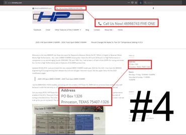 Going to his Floyd's website, BMWHP.COM, you can see an address and a weirdly inputted phone number. Why do people do that with phone numbers? To hide from search crawlers. This phone number matches the phone number given to the guy in picture #1. The address listed is a PO BOX in Texas so they decided to Google search it. He's since had to pull down the BMW HP logo off his website because BMW didn't want to be associated with him. Compliments to whomever reported his site to BMW.