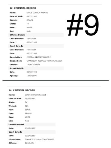 Burglary and Theft are only a couple charges that were found in the course of the investigation. This tells us we aren't dealing with a normal person, but a person with a criminal history. This establishes a consistent criminal behavior with a low moral compass. See below for theft charge that was reduced to a misdemeanor by a Grand Jury. No, Grand Jury's aren't usually summoned for a misdemeanor. This had to be a result of some sort of plea deal.